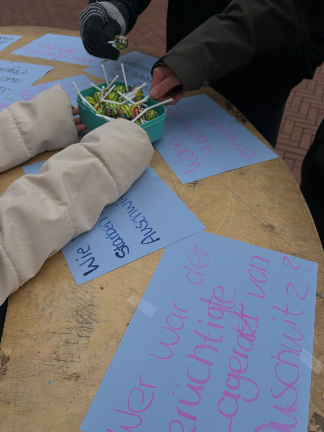Im Rahmen unseres Projekts „Nie Wieder Now“, das sich mit der Bekämpfung von Antisemitismus und der Erinnerung an den Holocaust beschäftigt, haben wir am 27. Januar 2026, dem internationalen Gedenktag für die Opfer des Nationalsozialismus und dem Jahrestag der Befreiung des Konzentrationslagers Auschwitz, eine öffentliche Aktion durchgeführt.